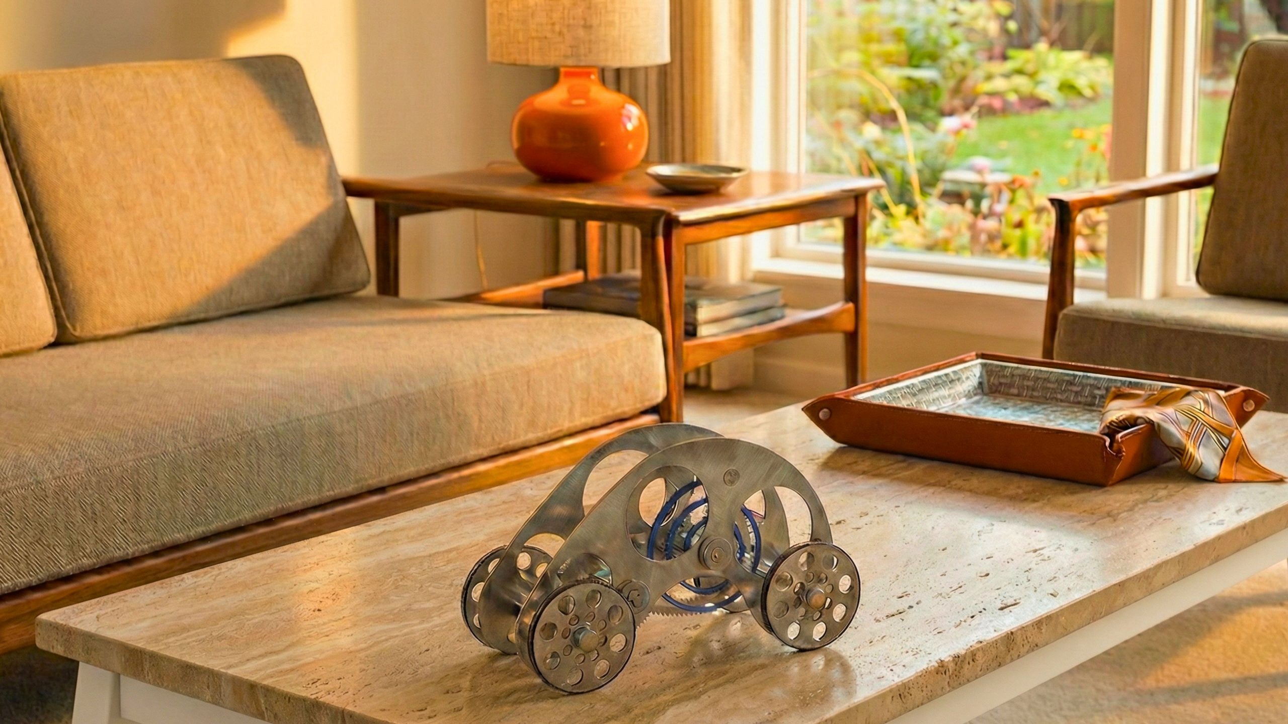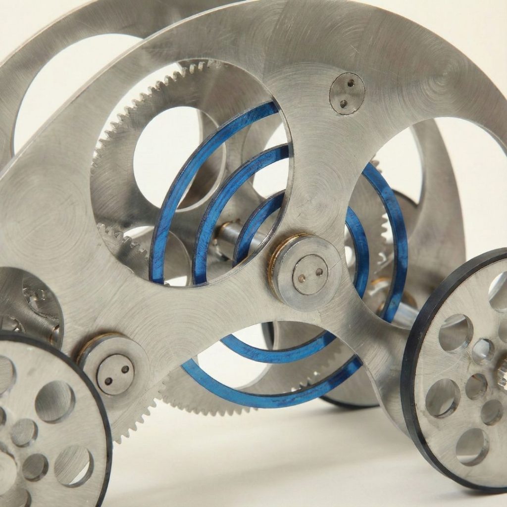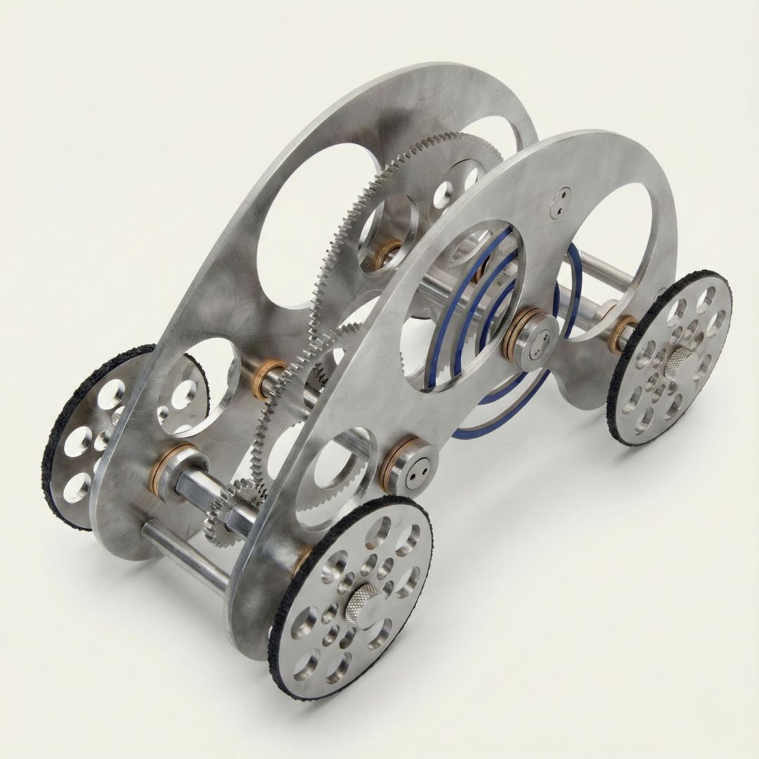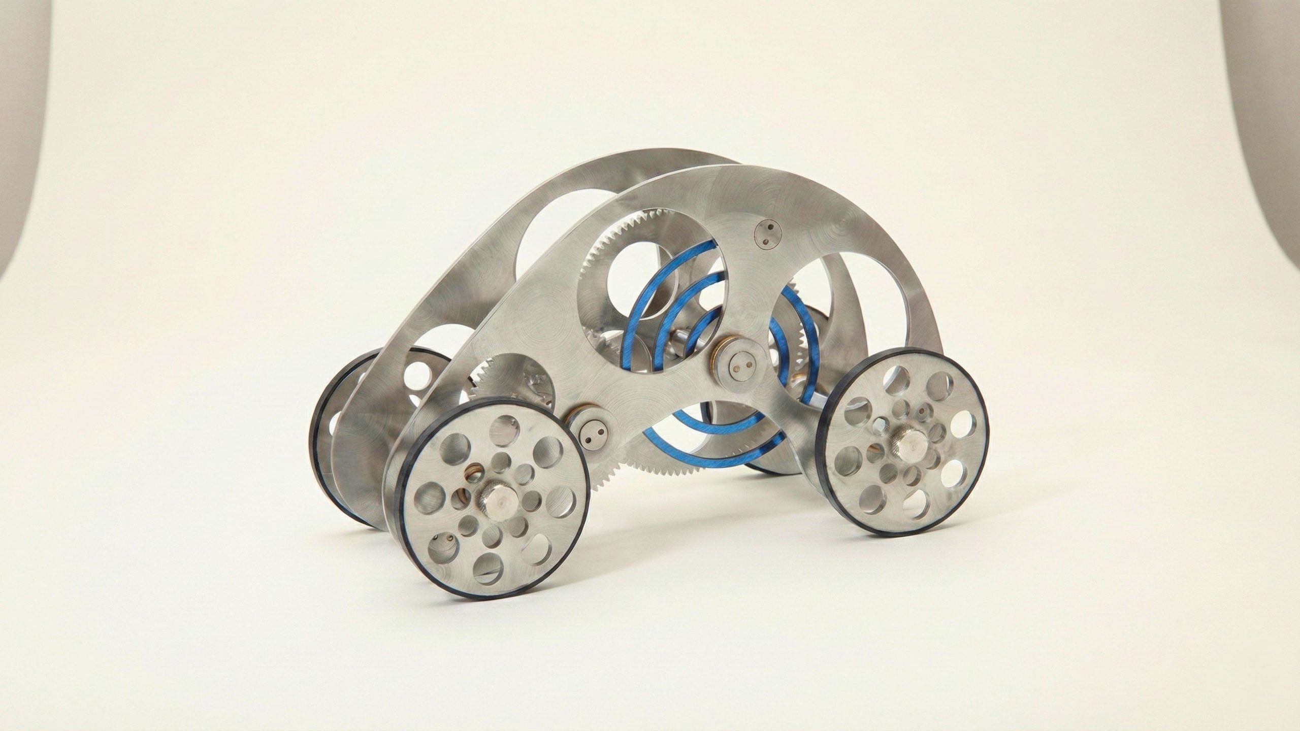 In the autocar, the boundary between rigid architecture and fluid motion dissolves. Evoking the intricate skeleton of a grand complication timepiece, this design strips away all superficial styling to reveal a complex lattice of stainless steel arches. The monochromatic weight of the chassis is pierced by a single, vibrant detail: a coil of blue tempered spring steel that sits at the center like a captive energy source. It is substantial and cold to the touch, grounding the space with nearly two pounds of specific gravity. The exposed gears mesh with deliberate resistance, a tactile confirmation that this is an object built on the principles of mechanical honesty and enduring substance.