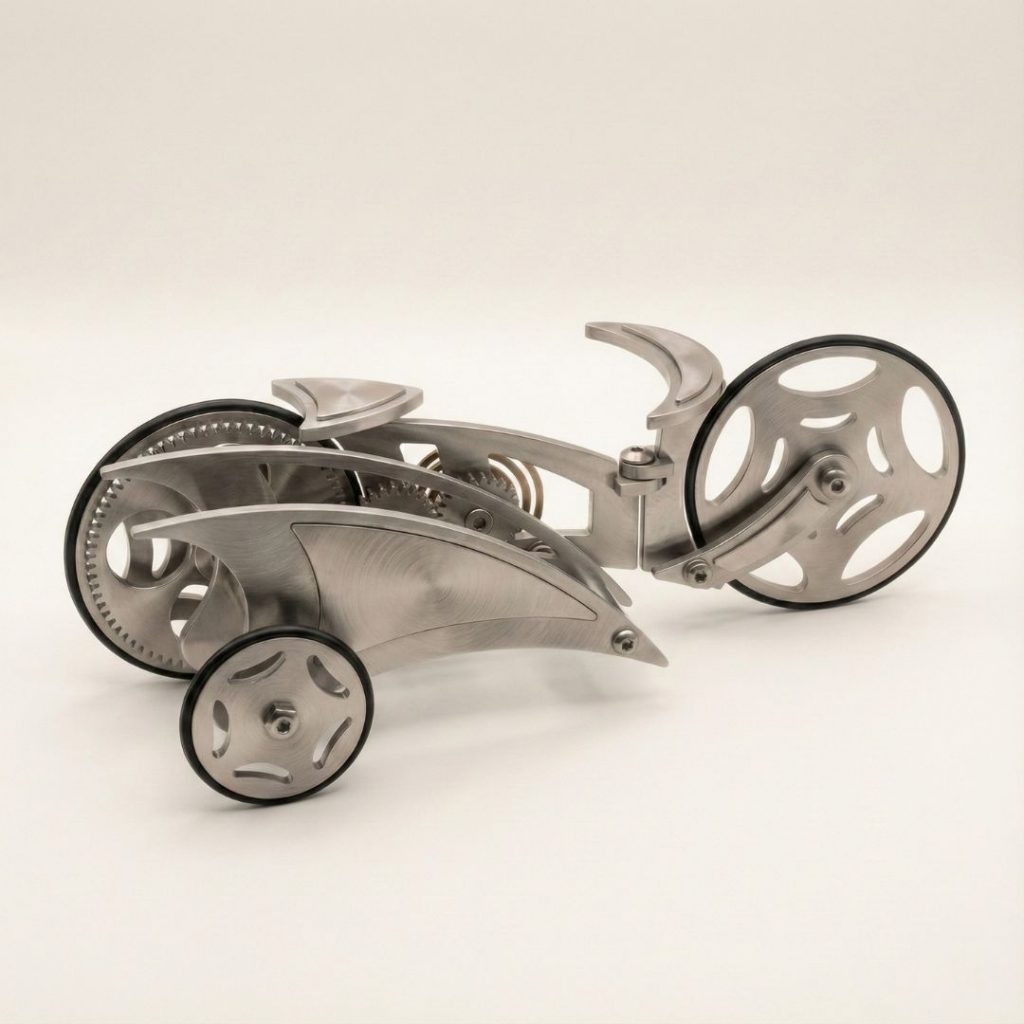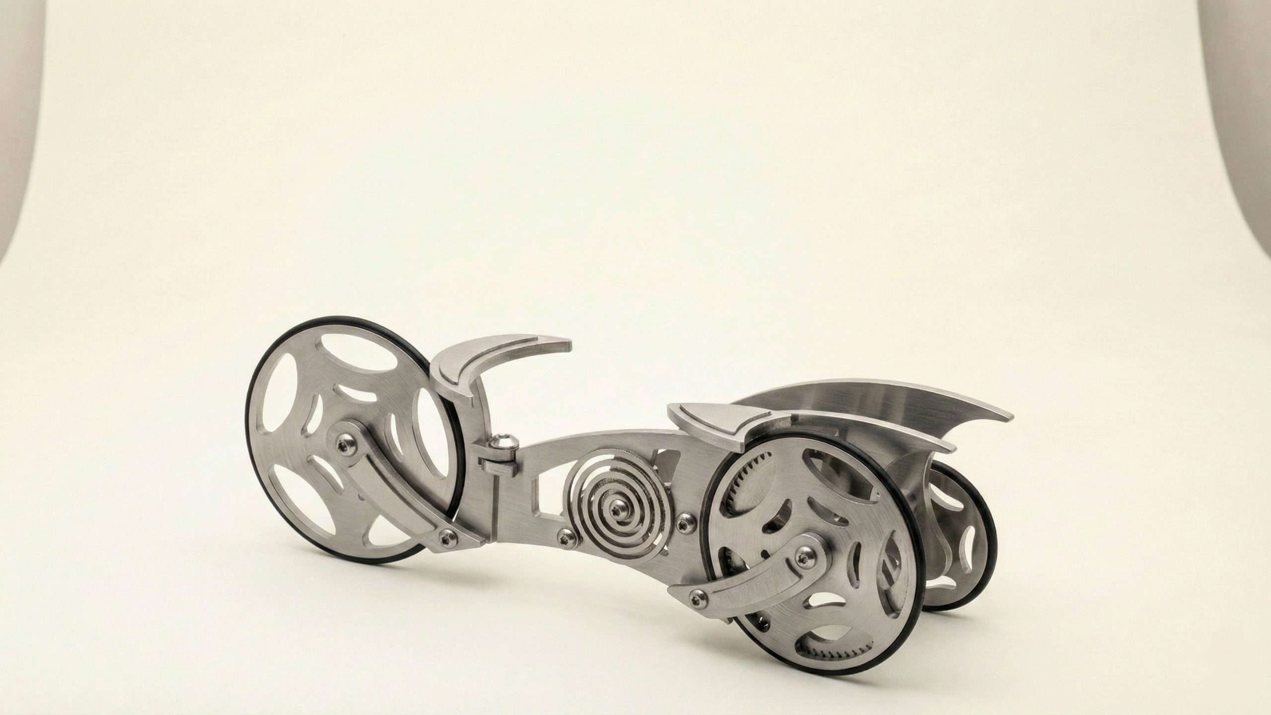 There is profound beauty in the intersection of raw industry and fluid art. The autocycle is a study in this contrast. Inspired by the clockwork propulsion theories of Leonardo da Vinci, this limited-run model transforms stainless steel into a silhouette of elegance. The piece captures the eye immediately with its distinct brushed texture, giving the static metal a sense of perpetual motion. Designed for the discerning eye, the autocycle eliminates welding scars for clean, bolted assembly, highlighting the mechanical honesty of the piece. It is heavy, cool to the touch, and meticulously balanced. A masterpiece of industrial design that proves the oldest ideas can be the most futuristic.